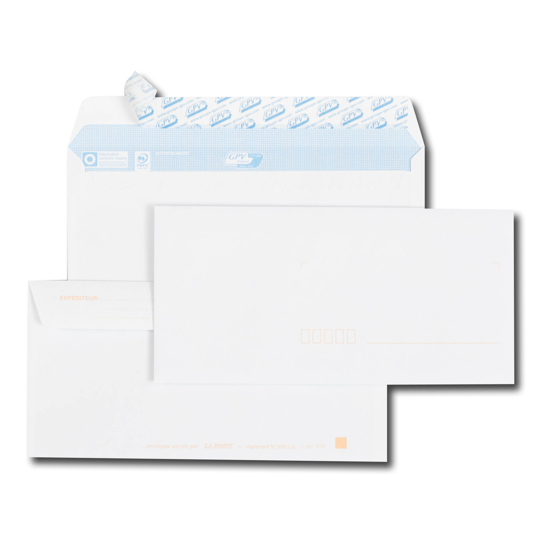 Bloc de 50 enveloppes blanches DL 110x220 90 g/m² précasées bande de protection
