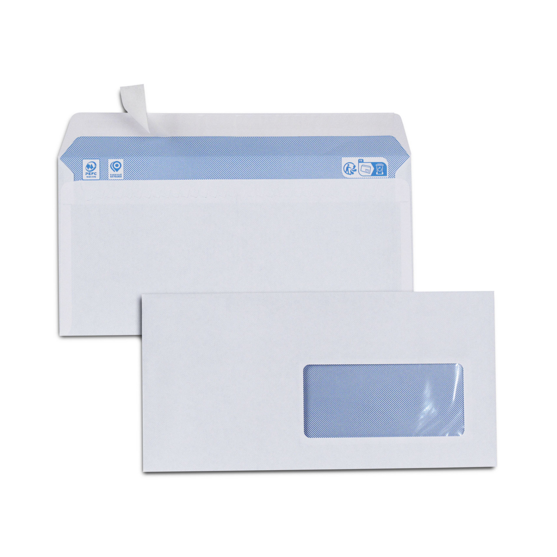 Boîte de 500 enveloppes blanches DL 110x220 80 g/m² fenêtre 45x100 bande de protection