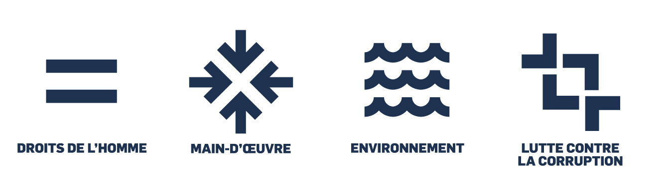 Depuis août 2019, nous soutenons les Dix Principes du Pacte Mondial des Nations Unies autour des droits de l'Homme, des normes internationales du travail, de l'environnement et de la lutte contre la corruption.